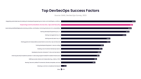 Poor communication stands as a significant bottleneck in the remediation process, often leading to delays and inefficiencies that can heighten organizational risk. The SANS DevSecOps Survey has consistently identified “improving communication across dev, ops, and security” as a top success factor for three consecutive years, underscoring the critical need for effective communication channels. When communication is fragmented across siloed departments, it becomes challenging to coordinate efforts, share vital information, and make informed decisions promptly.