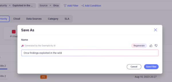 To make things even easier, Seemplicity now suggests names for scopes and filters based on the context of the fields you’re using. You can accept, edit, or regenerate the suggestions to fit your team’s preferences.