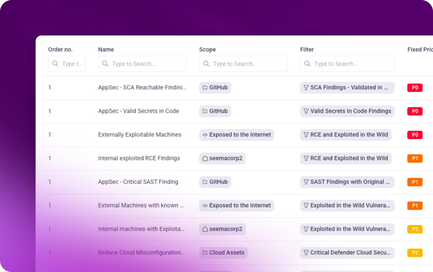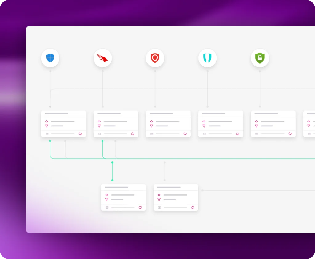 Aggregate, normalize, and de-duplicate findings across your entire attack surface. Create a common format for risk data that bridges the gap between siloed security tools.